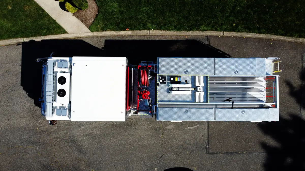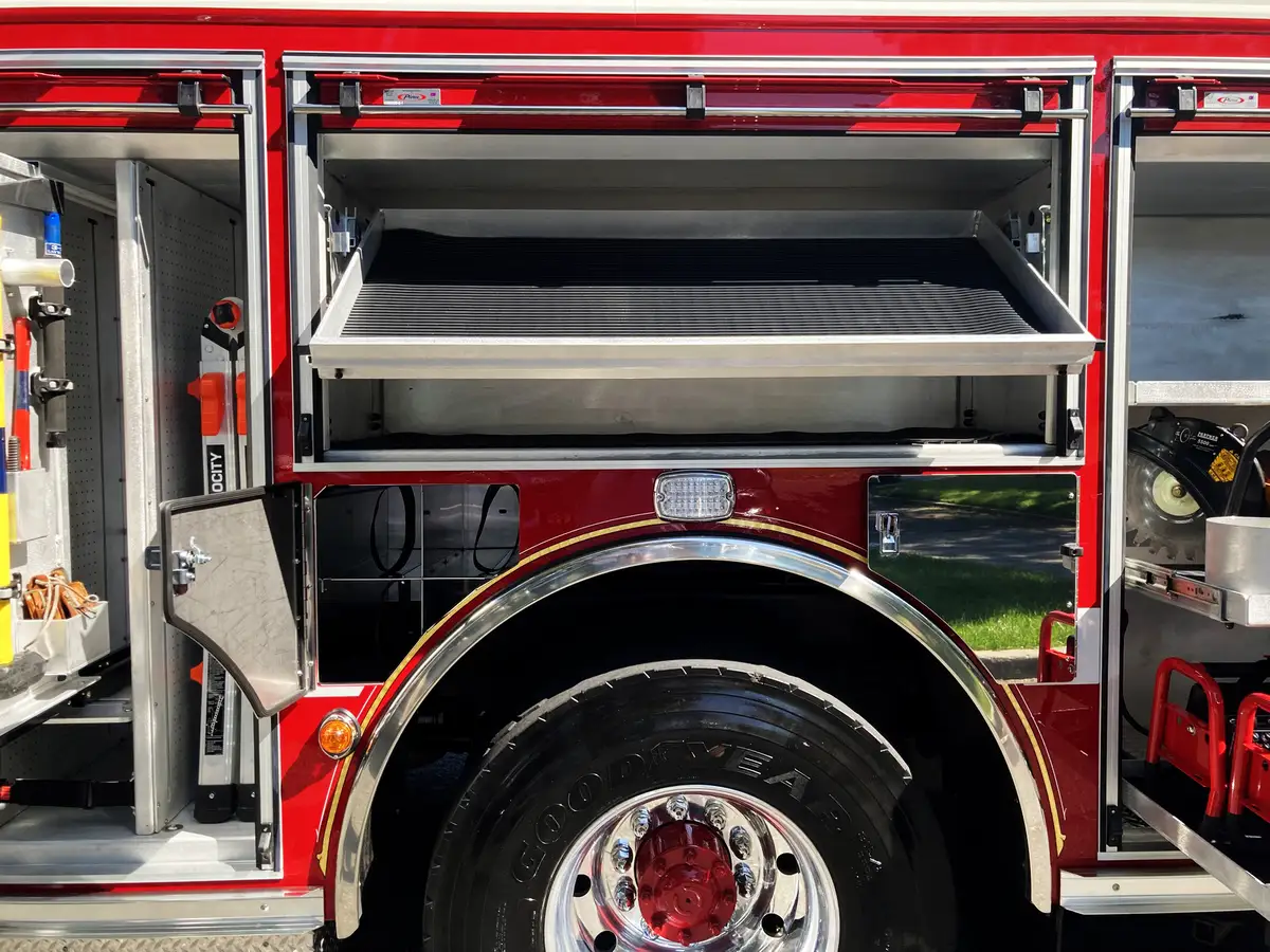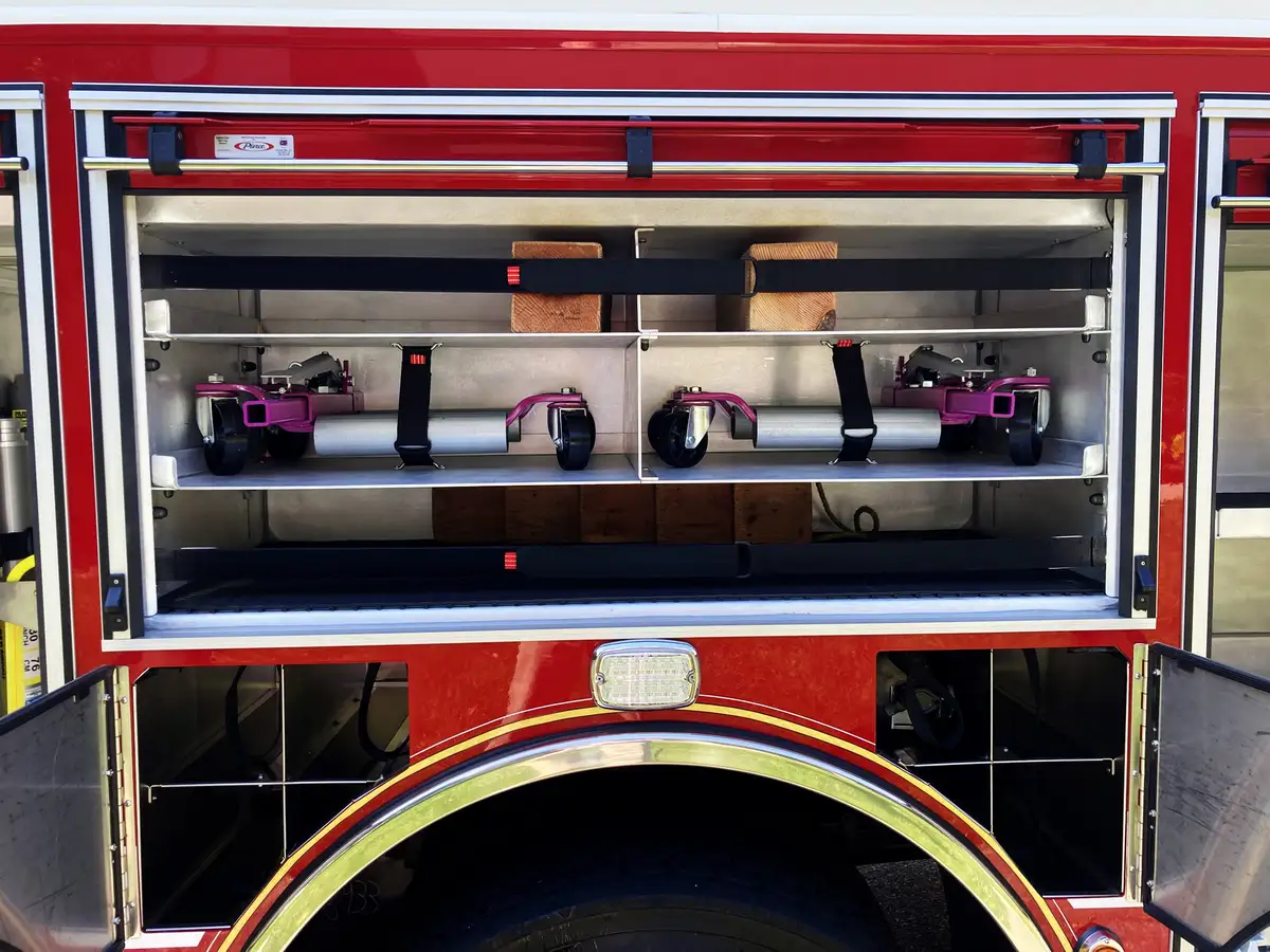 - Crosslay/booster: (1) 1.5" crosslay (200' of 1.75"); booster reel 150' of 1" (200' capacity).