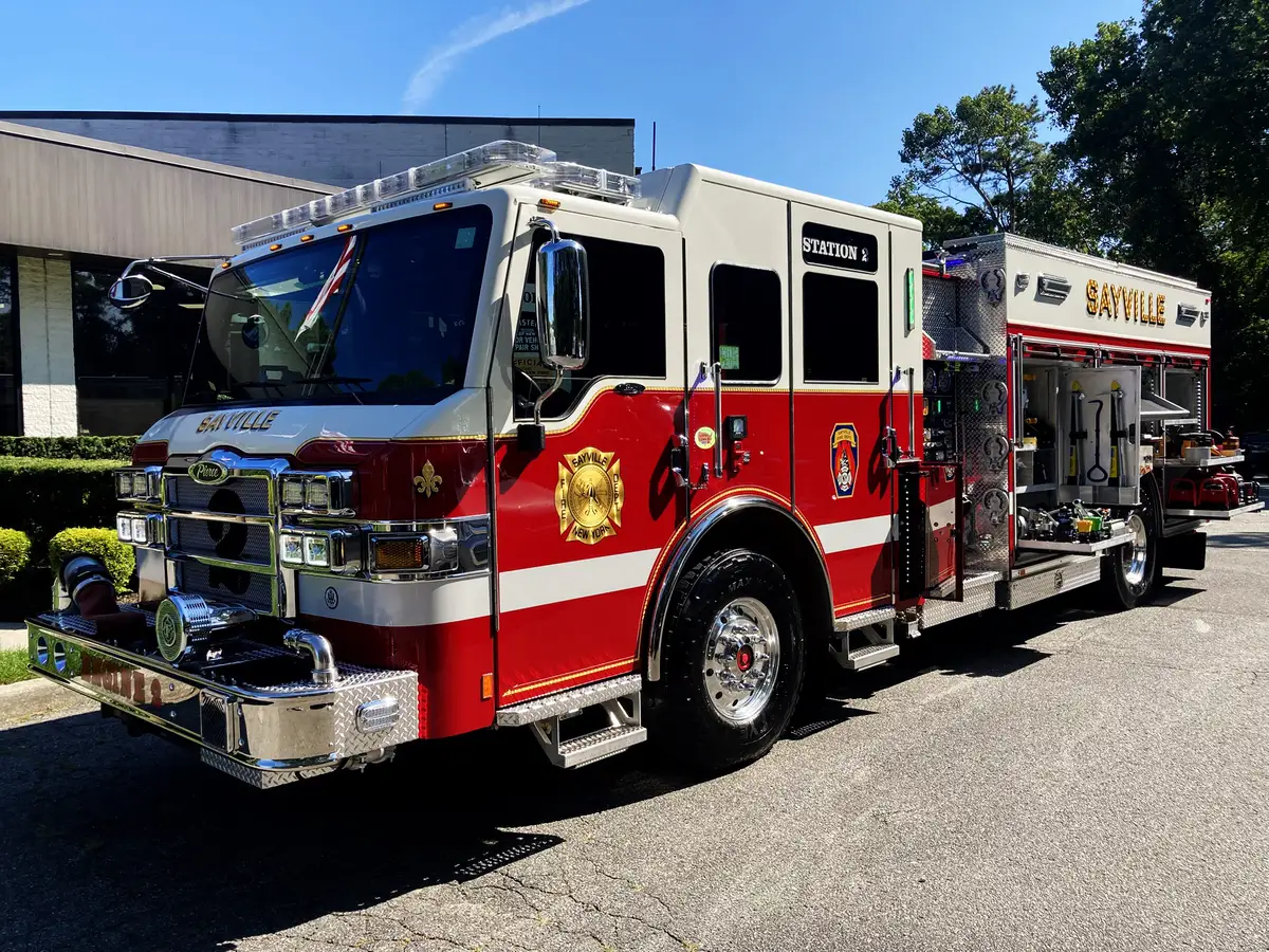 - Customer/Build: Sayville Fire District — Heavy Duty Rescue Pumper on Pierce Velocity chassis.