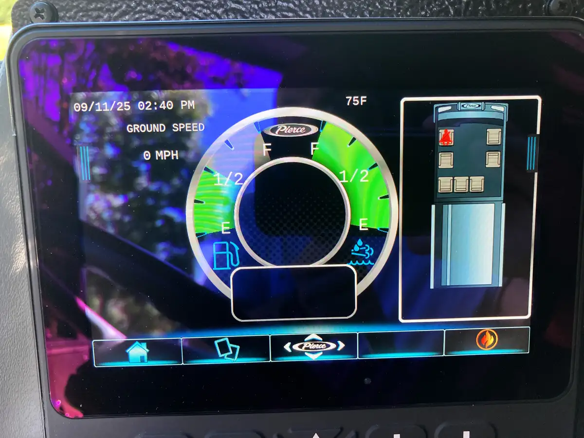 - Foam system: Husky 3 single-agent with 30-gal Class B foam cell; discharges at front bumper and crosslay.
