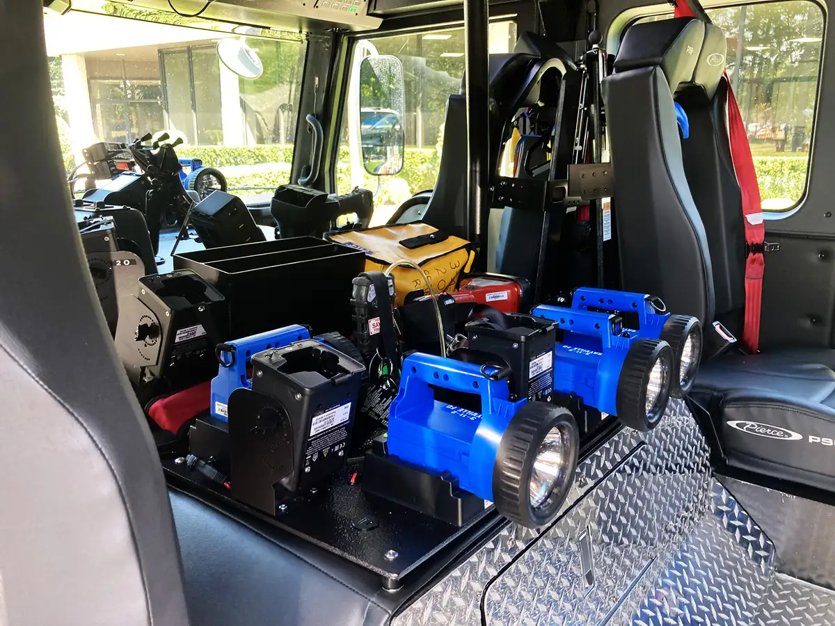 - Scene lighting: Will-Burt light tower (flood/spot) with controller at DS front body compartment.