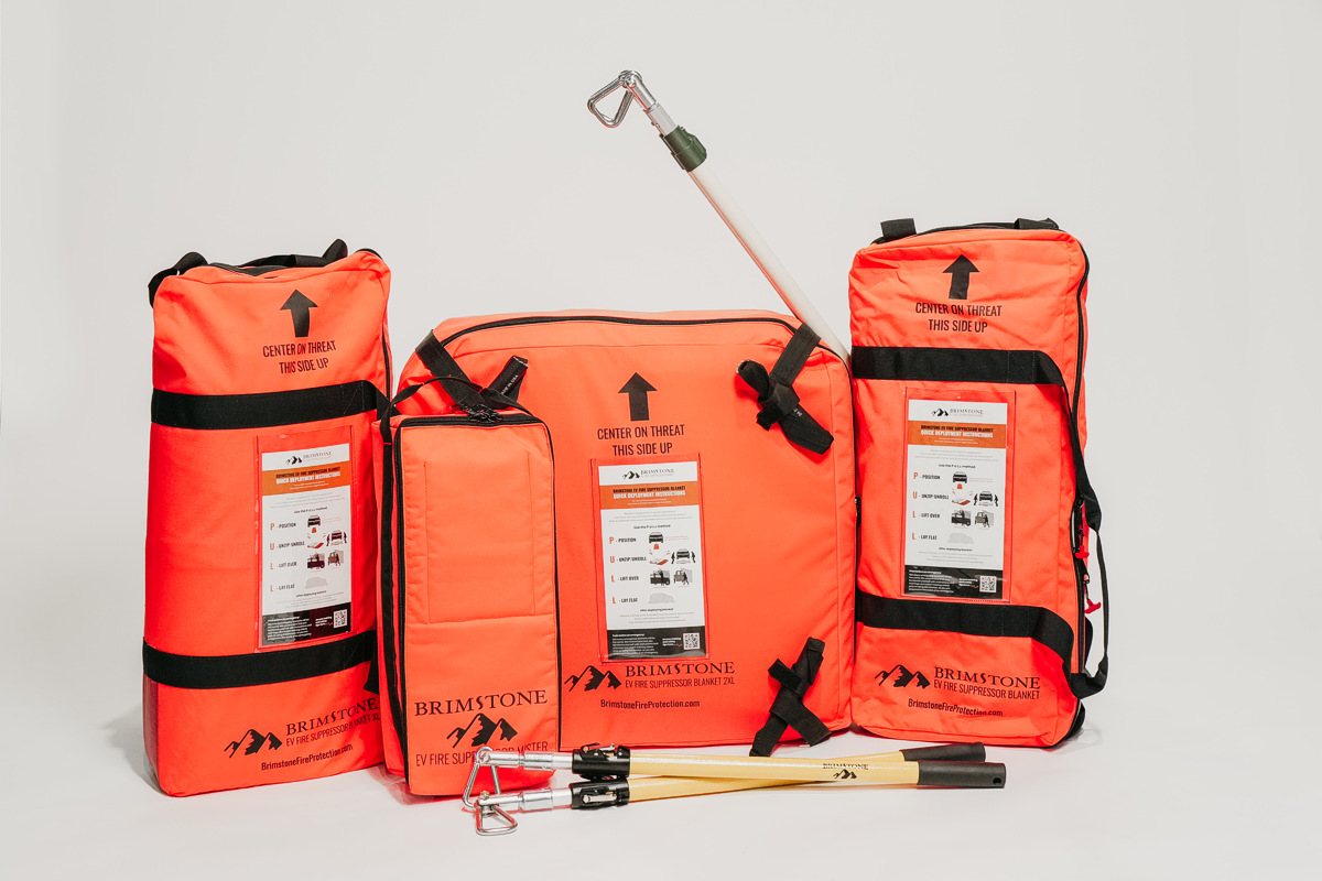 - X-Large blanket comes with a pair of unique Brimstone EV Fire Suppressor Extendable Poles for use on taller vehicles and/or to keep responders farther away from the threat.